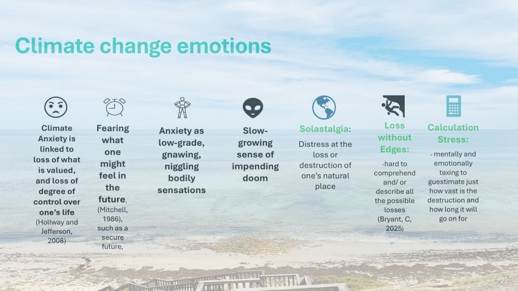These feelings and experiences about the environment and climate at large, can be quite varied and complex. We can call these Eco-Emotions.