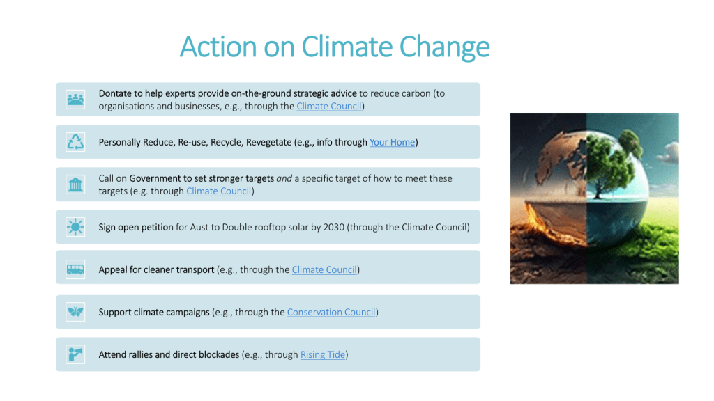 Climate Cafes are an especially useful online support for climate distress. They are chat circles, open to anyone, anywhere in Australia, and are run through different organisations. Learn more: