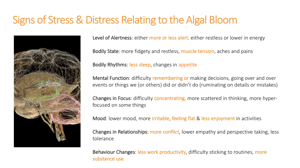 Here are a series of slides summarizing some useful info, ways of thinking and tips for personal coping during the algal bloom.